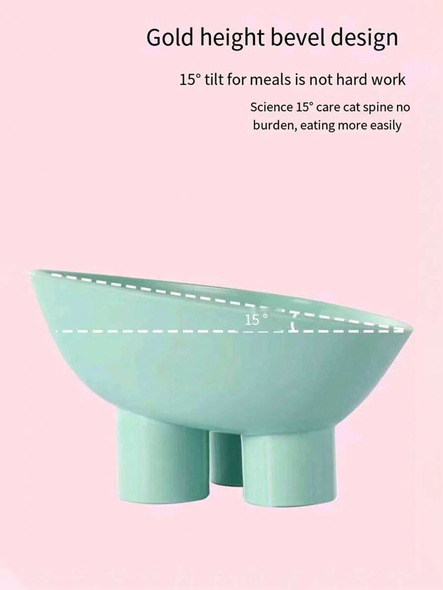 1pc Raised Cat Bowl, Tilted Elevated Cat Feeder Bowl With Neck Protection Riser, Plastic Cat Food & Water Bowl